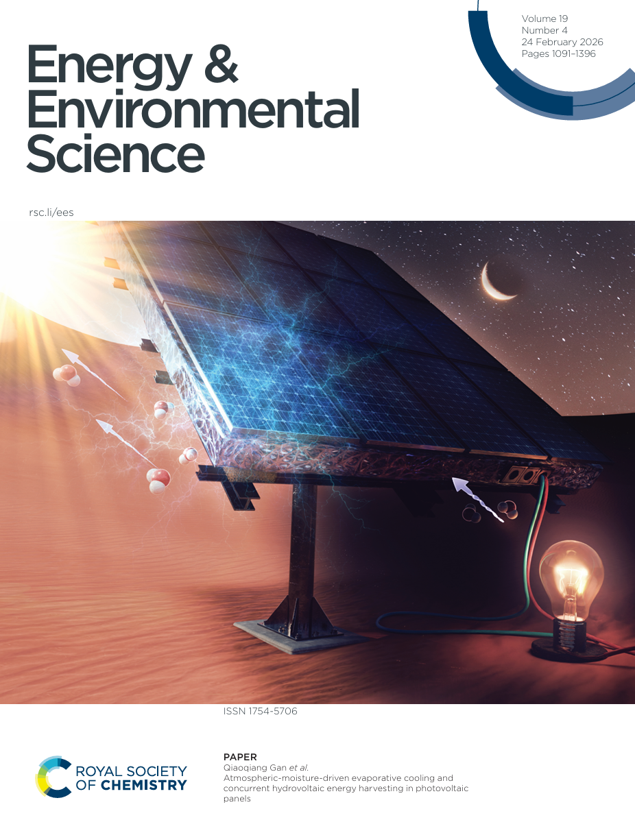 In this work, Qiaoqiang Gan and co-workers develop a hybrid photovoltaic–hydrovoltaic energy harvesting system that couples a moisture-driven hydrovoltaic device with photovoltaic panels using a hygroscopic hydrogel cooling layer. The hydrogel layer passively absorbs atmospheric moisture and provides evaporative cooling to reduce photovoltaic operating temperature, while simultaneously supplying water vapor to sustain hydrovoltaic electricity generation. By converting both ambient moisture and solar-induced waste heat into electrical energy, the integrated system enhances photovoltaic efficiency and enables continuous power generation for distributed electronics and Internet-of-Things devices.